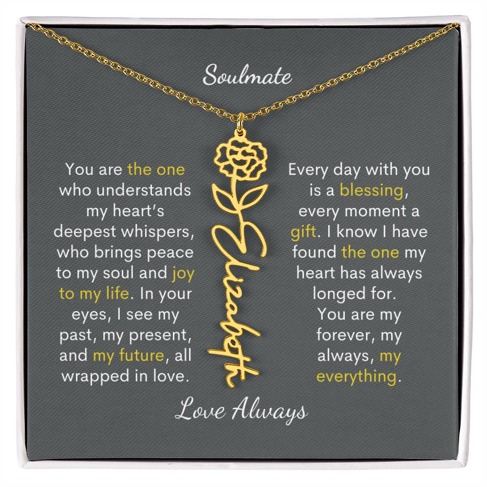 Calling all soulmates! Are you ready to blow minds and win hearts? Say hello to our Flower Name Necklace - the gift that's about to make you the undisputed champion of thoughtful presents!